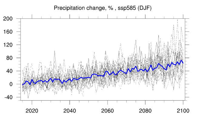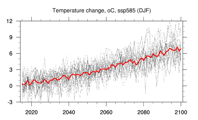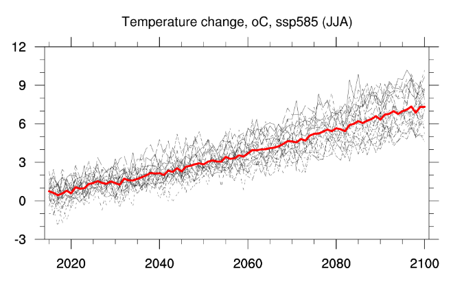 Олон загварын ансамбльЭндээс манай орны агаарын  температур, хур тунадасны ирээдүйн өөрчлөлтийн цаг хугацааны хувьслыг 2016-2100 оноор, тэдгээрийн газарзүйн тархалтыг 2006-2015 оны үетэй харьцуулан 2030, 2050, 2080 оны үеүдээр тус тус харж болно. Энэхүү мэдээ, мэдээлэл нь Монгол орны уур амьсгалын ирээдүйн өөрчлөлтийн ерөнхий суурь мэдээлэл болж, бодлого боловсруулагч, шийдвэр гаргагчдад,  бусад бичиг баримтын ШУ-ны үндэслэл болно.