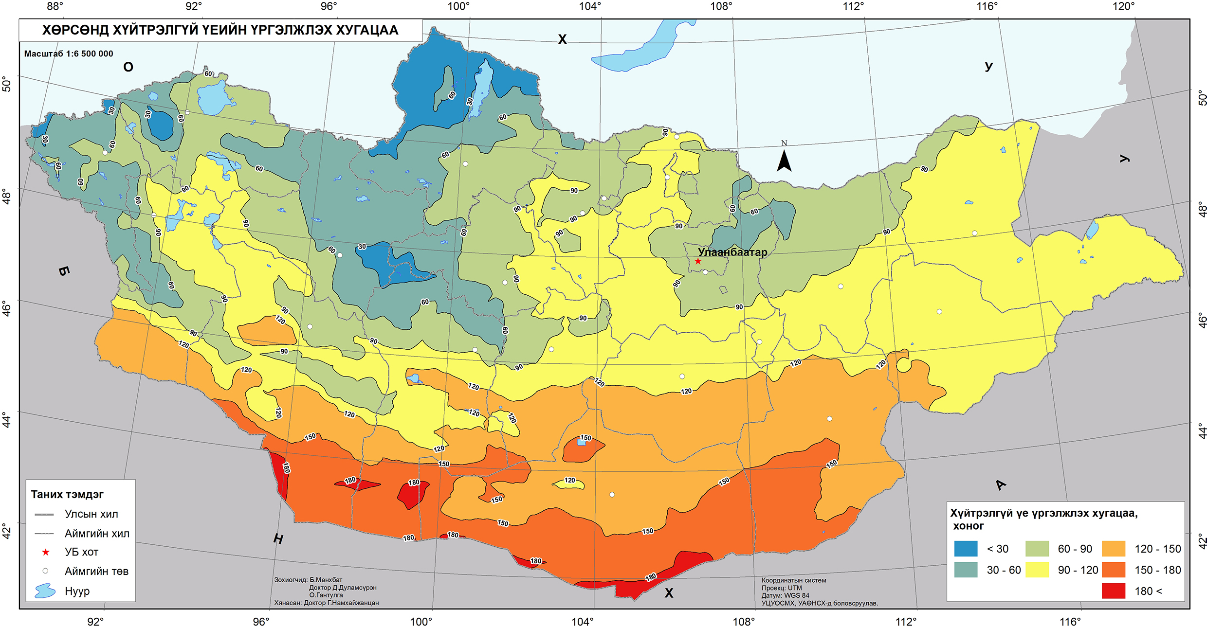 Зураг 1. Хөрсөнд хүйтрэлгүй үеийн үргэлжлэх хугацаа
